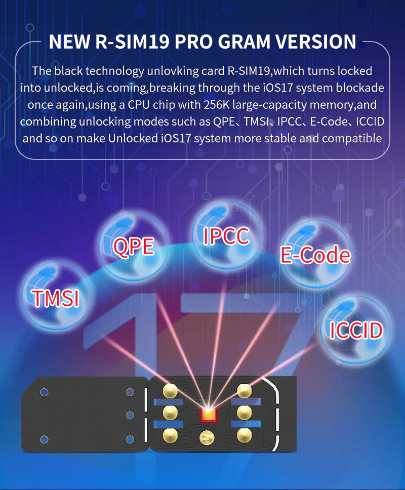 The new R-SIM19 can unlock the iPhone 15 Pro max/15PRO/15/14/13 and almost every other iOS17 operating system on the market. From R-SIM 1st generation to today's 19th generation, including GEVEY/X-SIM/SAMSIM/REBEL SIM unlock card and so on, today's R-SIM19 NEW QPE stable version iOS17 unlock sim card is the most stable brand and the most trusted iPhone unlock sim card on the whole world's market.